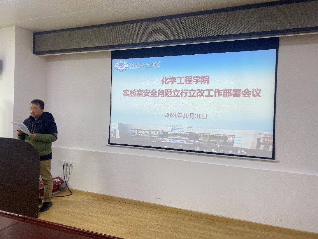 为深入贯彻落实省委第六巡视组对学校化学药品管理以及化学实验室日常管理等方面所反馈的意见建议,确保巡视整改工作取得实效,尽快执行关于落实《巡视期间立行立改问题移交表》(编号:001)相关问题的整改通知,beat365官网于10月31日召开全院大会,对第十三届省委第六轮巡视组所反馈的实验室安全问题立行立改工作进行部署。会议由王康军院长主持,各实验室负责人参加。