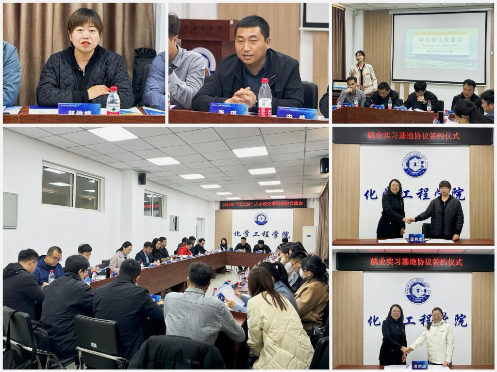 辽宁省轻工设计院有限公司、石药控股集团有限公司、中海壳牌石油化工有限公司、赛轮(沈阳)轮胎有限公司等6家企业代表发言,分析行业发展前景、梳理基地共建问题、总结学生培养经验、介绍本次双选会用人需求,会上发言踊跃、讨论热烈。