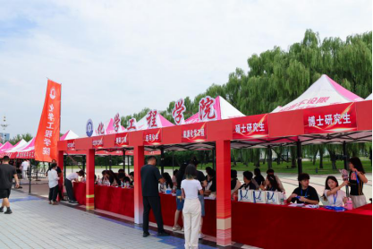 视线转回beat365英国官方网站院内,beat365英国官方网站的迎新报到处早已布置妥当:鲜红的欢迎横幅高悬于上空,各专业的报到指示牌一字排开,迎新志愿者们身着统一服装,热情洋溢又一丝不苟地忙碌着,整个报到处俨然一个充满暖意的“迎新营地”。