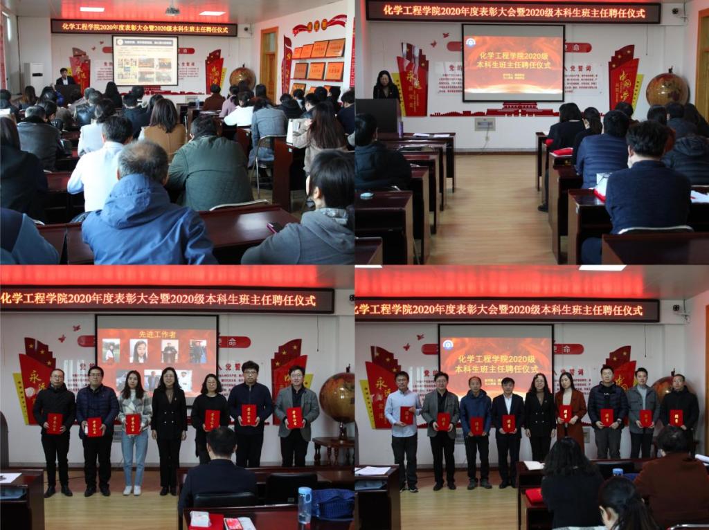 接下来,战君书记分别宣读了各项表彰决定及班主任聘任名单。学院领导依次为受表彰的集体和个人进行颁奖。最后,总支书记战君同志作重要讲话,她讲道,班主任工作是辅导员工作的一个补充,能够加强专业教师与学生的沟通和了解,增强教师的育人意识,提高教师的育人水平,塑造高尚的师德风范,同时也是践行beat365官网人才培养、协同育人的一种机制。她同时强调,2021年是中国共产党建党100周年、也是“十四五”规划的开局之年,全院师生员工必须正确认识面临的重大机遇、严峻形势和薄弱环节,不忘初心更进取,策马扬鞭再奋蹄,要大力弘扬为民服务孺子牛、创新发展拓荒牛、艰苦奋斗老黄牛的“三牛”精神,以团结之心、实干之力、拼搏之劲,续写更有深度、更有厚度的化工华章,彰显更高水平服务国家战略、更高质量助推区域经济的化工担当!